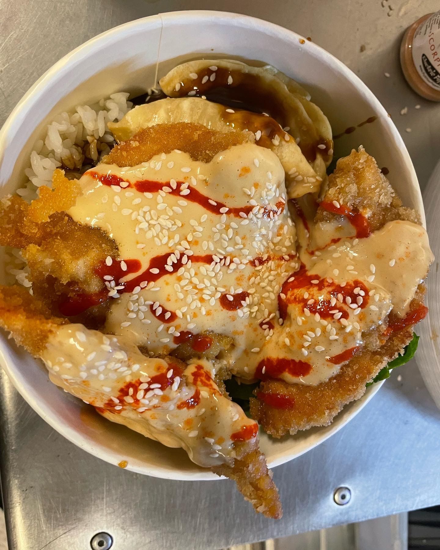 And of course with his "Signature Sauce - Roasted Garlic and Ginger Aioli". We got the original sauce that will blow your mind. (we also have our "Thai Sweet & Spicy" gluten-free sauce that will blow your mind)